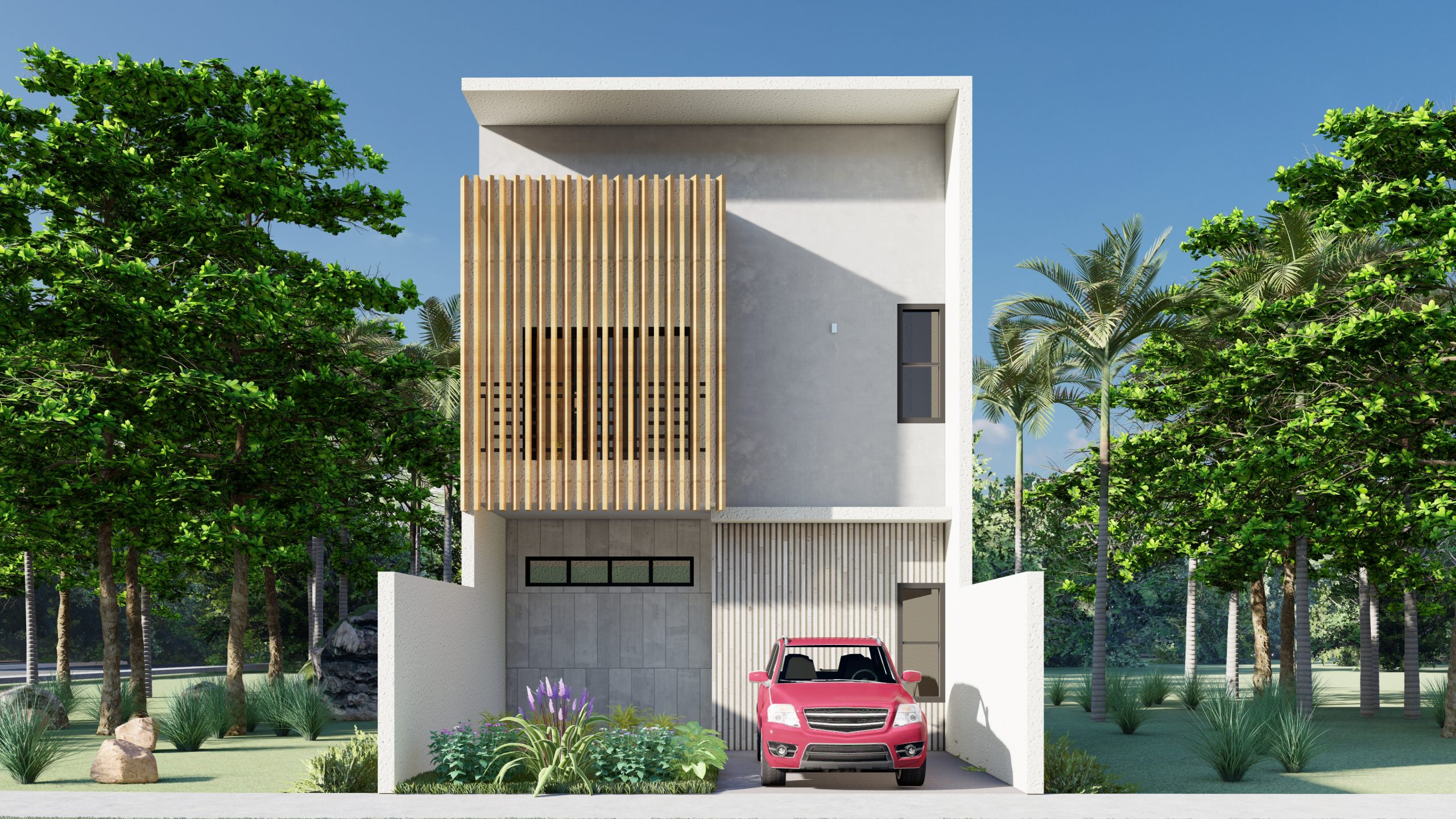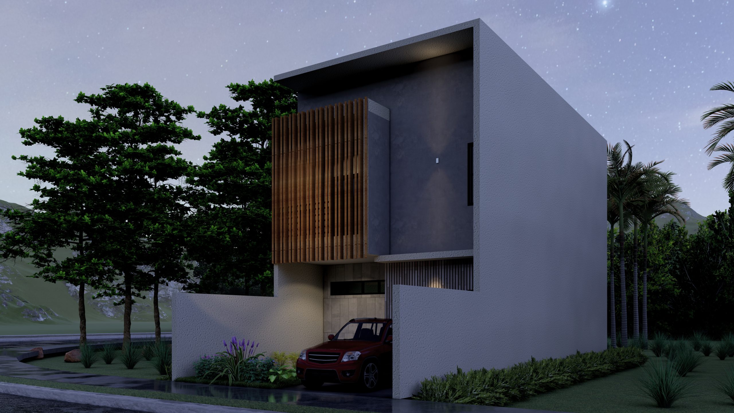 Desain rumah industrial memiliki konsep bentuk geometris dengan perpaduan material semen konkrit dan penambahan material alam kayu. Dengan rumah 2 lantai mampu menampung jumlah pengguna yang cukup dengan fasilitas ruang yang memadai.